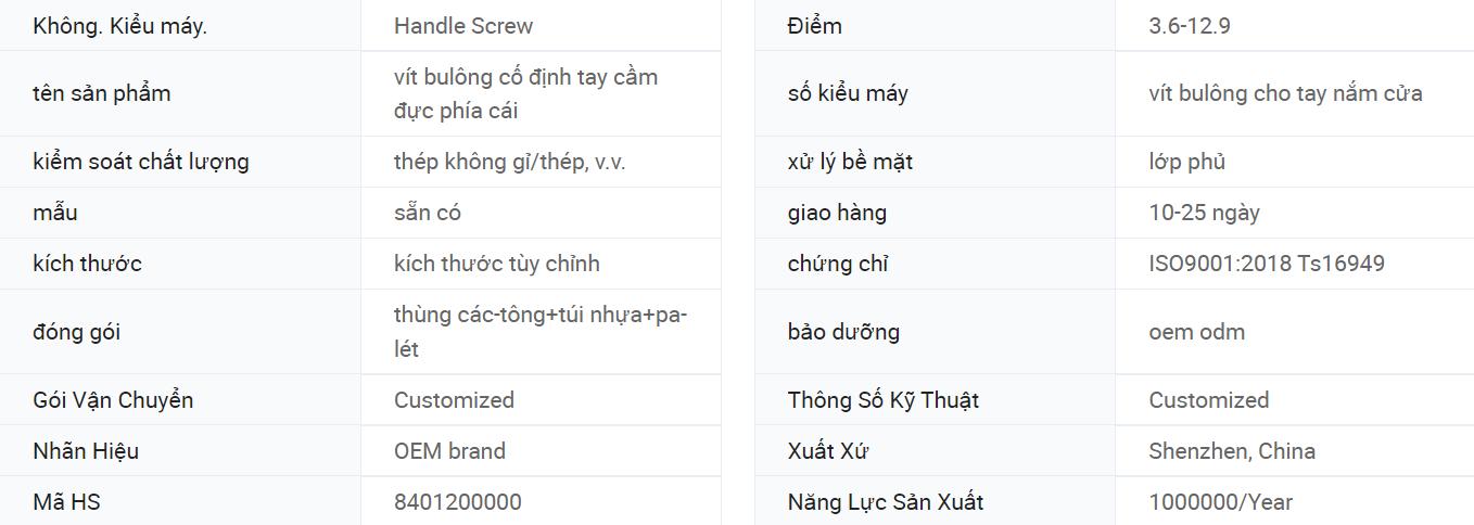 Vít bulông ấn định vít xử lý vít đực với tay nắm cửa